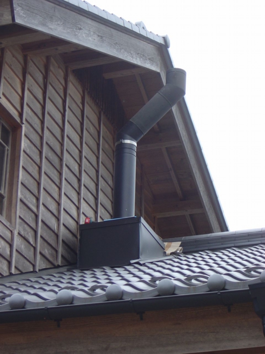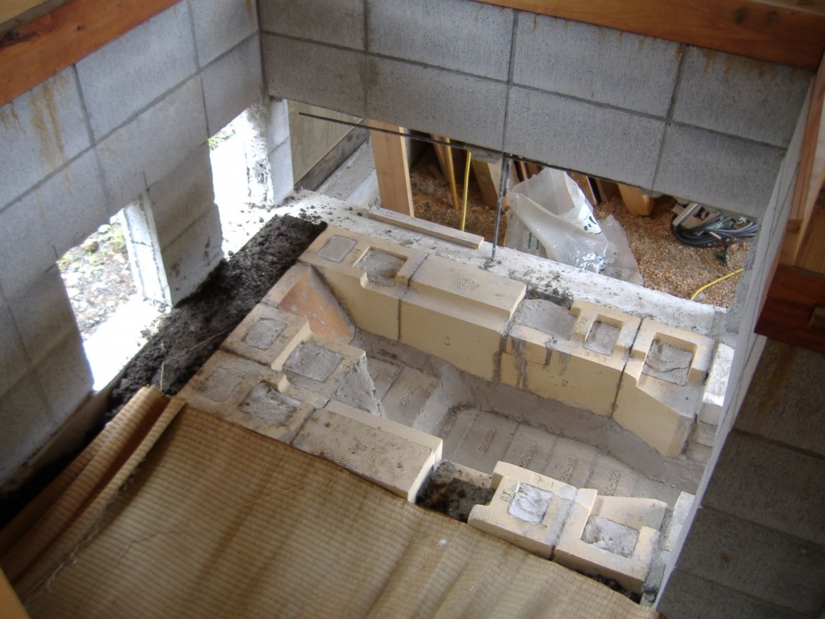 炉台、遮熱壁や煙突の設置を自分たちで行いました。炉台は大谷石。遮熱壁はレンガ。煙突の設置に苦労しました。一部板金屋さんにもお願いしました。