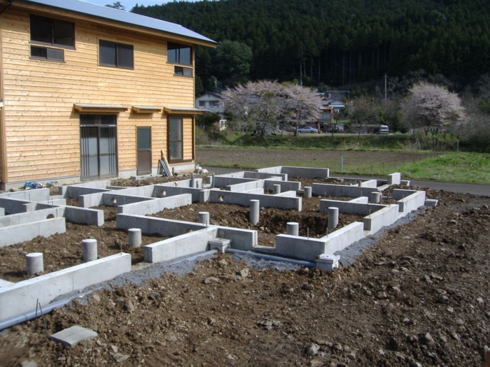 今日ではベタ基礎といって、コンクリートで全面を固めてしまう基礎が主流です。しかしながら、土の恩恵を十分に得ることができるように、土をむき出しにした布基礎をできる限り採用します。「天空の城ラピュタ」というアニメ映画にもありました、「土から離れては生きられないのよ」。