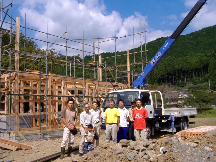 関塚農場では2009年よりハーフセルフビルドによって家づくりを行いました。まず、練習もかねて延べ床15坪の研修棟を建設。その後、延べ床50坪の母屋に挑戦。定年退職した父が手伝ってくれました。素人二人で建てた、その時の様子を写真とともに掲載します。ほぼ完成したのは2013年ですので、5年ほどかかりました。