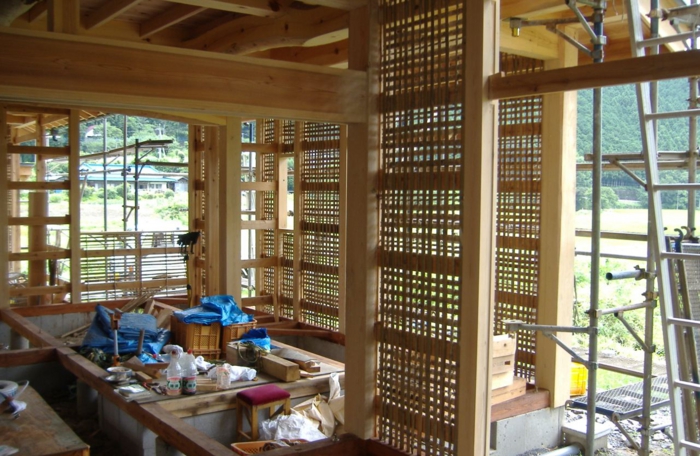 日本の伝統的な軸組構法で無垢の木をふんだんに利用します。