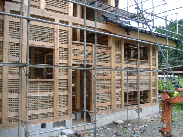 竹小舞かきと荒壁塗りはワークショップで多くの方に手伝っていただきました。のべ160人もの方に参加いただきました。ありがとうございました。竹小舞は壁を塗ってしまうのがもったいないくらい、きれいでした。自分たちでできてしまうのが不思議でしたが、ただただ感動。