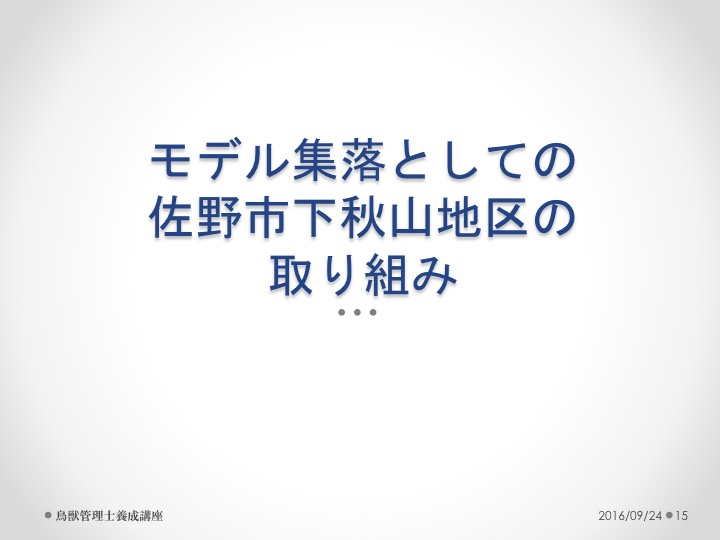 鳥獣管理養成講座で鳥獣管理士として、佐野市下秋山地区の獣害対策を宇都宮大学にて話してきました。2016年9月24日(土)